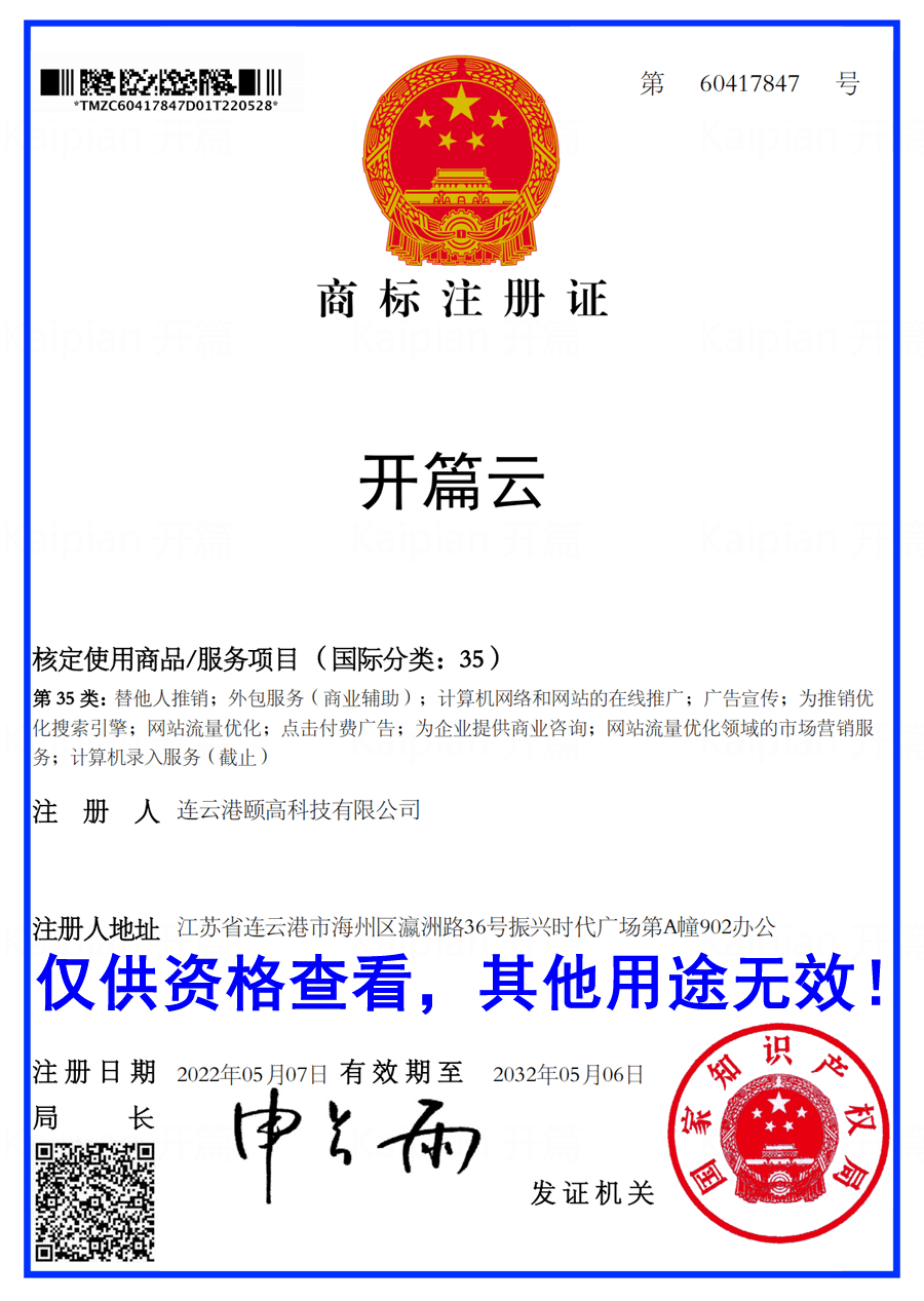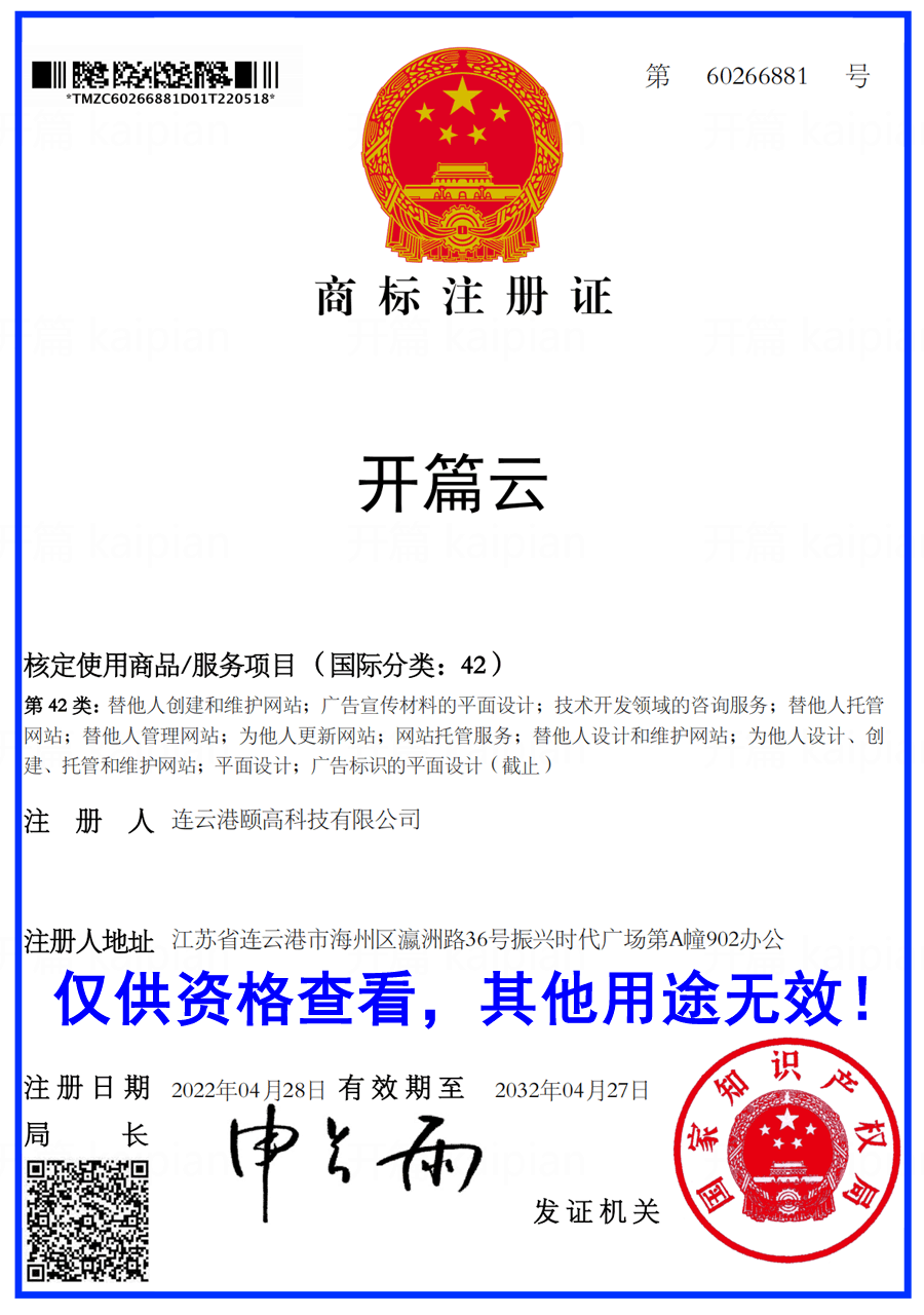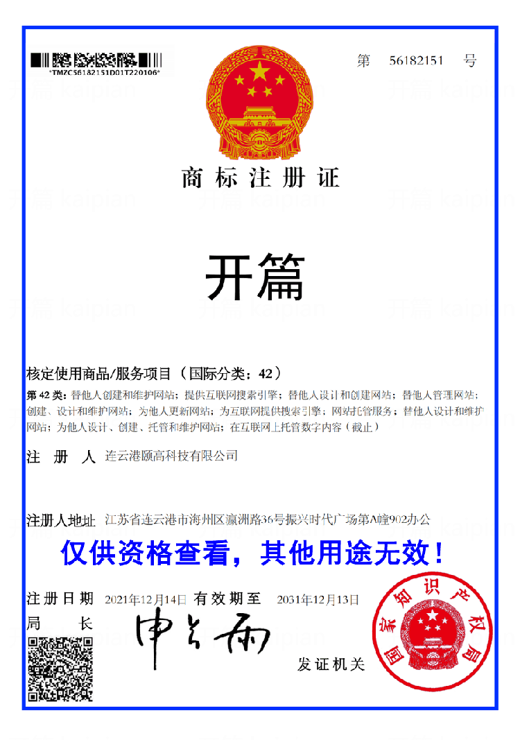 注冊商標“開篇”和“開篇云”是公司旗下的核心商標品牌。無論您的網站是阿里云建站、云企業官網、華為云建站、騰訊云建站、中企建站、凡科建站、云夢建站、寶塔面板、唯建站、自助建站、帝國程序、織夢程序、美橙建站、獨立程序、vue框架、PHP建站、ASP建站、單頁面網站、HTML靜態建站還是其他的建站程序后臺,我們都可以開展SEO優化、網站收錄、關鍵詞優化等網站服務,歡迎您聯系我們。