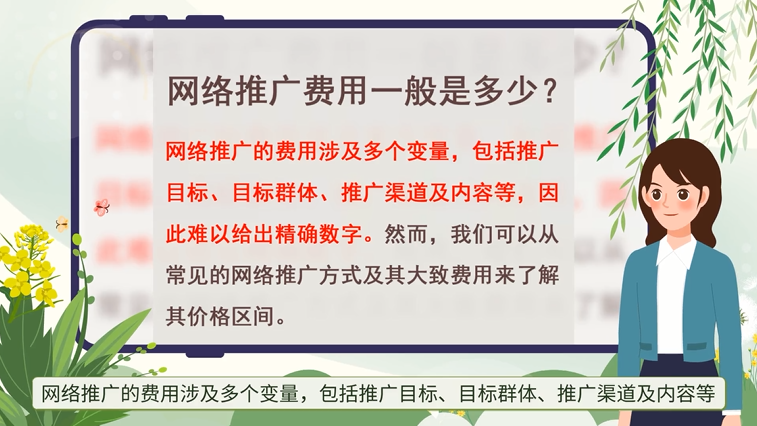 網(wǎng)絡(luò)推廣的費用涉及多個變量,包括推廣目標(biāo)、目標(biāo)群體、推廣渠道及內(nèi)容等,因此難以給出精確數(shù)字。然而,我們可以從常見的網(wǎng)絡(luò)推廣方式及其大致費用來了解其價格區(qū)間。