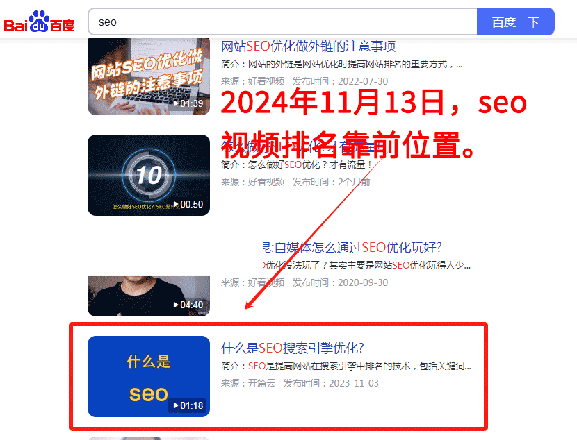 seo排名百度視頻的1頁