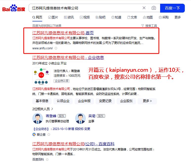 2024年2月5日,江蘇阿凡提信息技術有限公司開篇云運作10天網站收錄