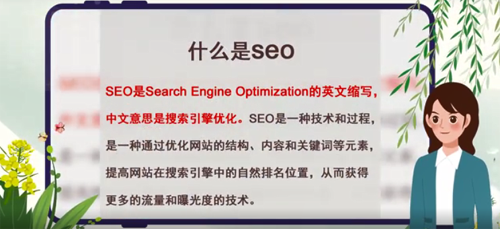 SEO是Search Engine Optimization的英文縮寫,中文意思是搜索引擎優化。SEO是一種技術和過程,是一種通過優化網站的結構、內容和關鍵詞等元素,提高網站在搜索引擎中的自然排名位置,從而獲得更多的流量和曝光度的技術。
