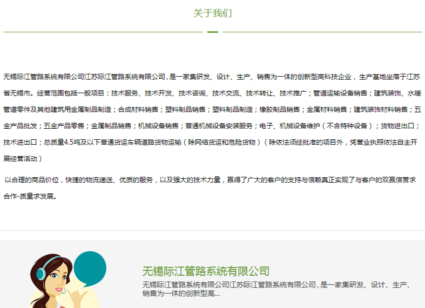 感謝【江蘇】無錫際江管路系統(tǒng)有限公司選擇開篇云。無錫際江管路系統(tǒng)有限公司成立于2023年02月,注冊地位于江陰市華士鎮(zhèn)華西村工業(yè)園。經(jīng)營范圍包括一般項(xiàng)目:管道運(yùn)輸設(shè)備銷售;建筑裝飾、水暖管道零件及其他建筑用金屬制品制造;合成材料銷售;塑料制品銷售;塑料制品制造;橡膠制品銷售;金屬材料銷售。